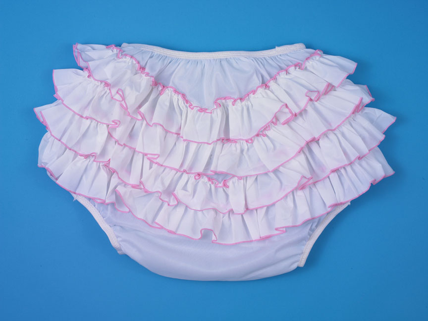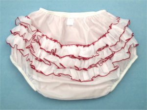 pants. The outside is white nylon tricot and has either 3 or 4 rows of ruffles on