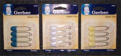 diaper pins in your choice of White, Yellow or Blue. Note: These are regular size diaper
